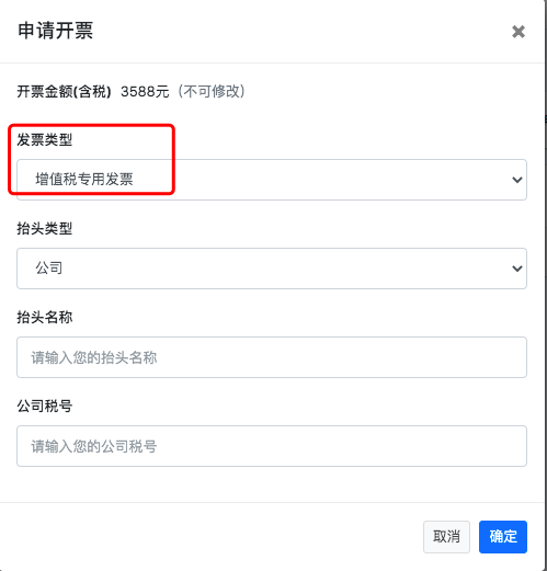 如需报销是抵扣增值税,请选择增值税专用发票(仅限企业,个人只能开普票)
