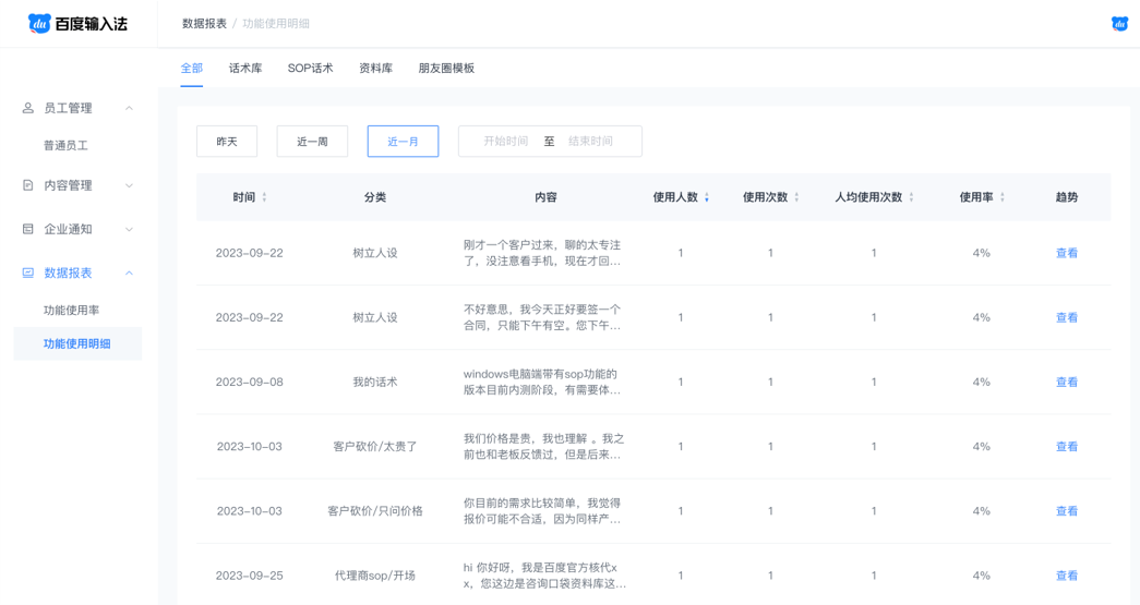 • 通过百度输入法口袋资料库,统一了产品信息和SOP信息,并且实时更新。